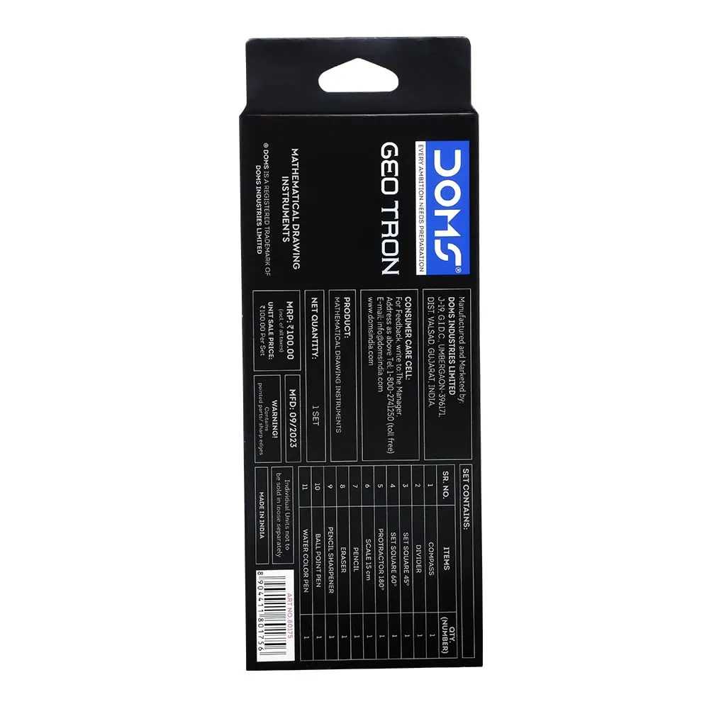 Unleash your inner architect with the DOMS Geotron Mathematical Drawing Instruments Box. This meticulously crafted set provides the precision tools needed for accurate geometric constructions.